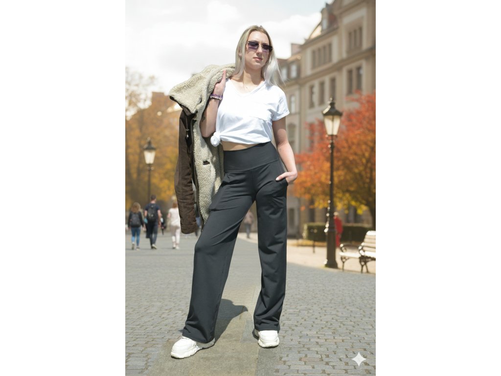 Neprůhledné anticelulitidní kalhoty s vysokým pasem a dvěma kapsami. Tvarující, pohodlné, šité v ČR. Videa k dispozici. Možnost prodloužení délky.