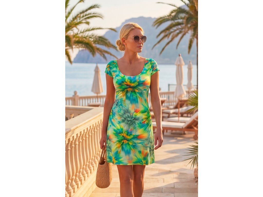 Velkou předností těchto šatů je jejich barevnost. Tyrkysové a zelené tóny evokují moře, palmy, léto a středomořskou dovolenou, zatímco květinový vzor dodává celému modelu jemnost, ženskost a módní atraktivitu. Právě proto se tyto letní šaty s květinovým vzorem hodí ženám, které chtějí během léta působit upraveně, svěže a elegantně bez zbytečné strohosti.
