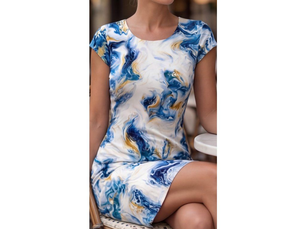 AZZURA SIENA – dámské letní šaty Elegantní přiléhavé šaty s modro-bílým mramorovým potiskem