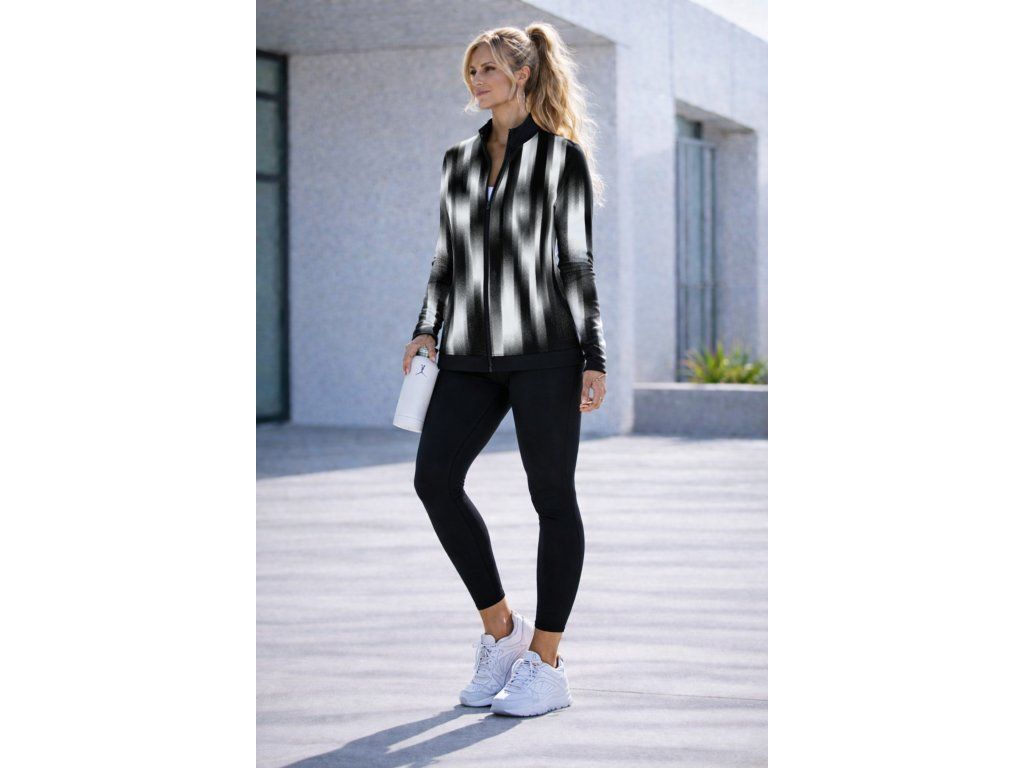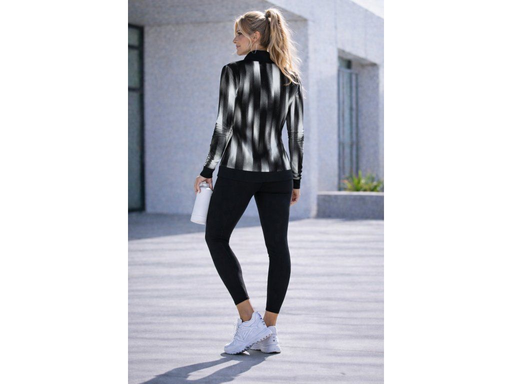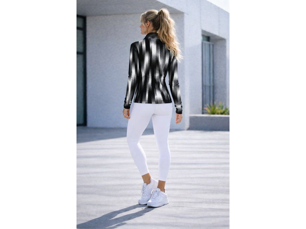 Dámská sportovní mikina na zip s dlouhým rukávem zaujme elegantním černo-bílým designem, přiléhavým střihem a moderním sportovním vzhledem – Silver Shade. Tento stylový kousek je ideální pro ženy, které hledají pohodlnou fitness mikinu na cvičení, lehký trénink, procházky i volný čas. Díky praktickému zapínání na zip se mikina snadno obléká a skvěle funguje jako sportovní vrstva ke legínám i dalšímu aktivnímu outfitu. Výrazný, ale zároveň čistý monochromatický vzor působí nadčasově, elegantně a snadno se kombinuje s bílými, černými i barevnými sportovními kousky. Přiléhavý střih zvýrazňuje ženskou siluetu a dodává modelu moderní sportovní charakter. Pokud hledáte dámskou sportovní mikinu, fitness mikinu na zip nebo lehkou sportovní bundu pro ženy, která spojuje styl, pohodlí a univerzální využití, tento model bude skvělou součástí vašeho sportovního i volnočasového šatníku – Silver Shade.
