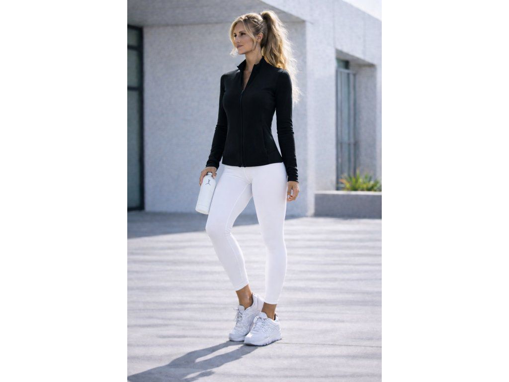 Praktické zapínání na zip usnadňuje oblékání a zároveň umožňuje pohodlné vrstvení přes sportovní top nebo podprsenku. Přiléhavý sportovní střih krásně zvýrazňuje siluetu a dodává mikině moderní, elegantní charakter. Díky tomu se tento model skvěle hodí jako fitness mikina, mikina na cvičení, lehká vrstva do fitka i stylová součást aktivního outfitu na běžný den. Černá barva navíc patří mezi nejoblíbenější volby ve sportovní módě, protože působí univerzálně, lichotivě a velmi snadno se kombinuje – Eclipse Noir.