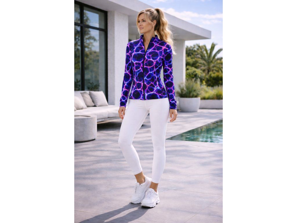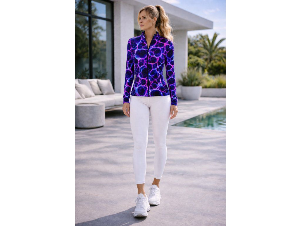 Neuro Glow je dámská sportovní mikina na zip s dlouhým rukávem, která zaujme výrazným neonově fialovým designem a moderním sportovním vzhledem. Přiléhavý střih působí elegantně a zároveň je pohodlný pro aktivní pohyb i běžné nošení. Tato dámská fitness mikina se skvěle hodí na cvičení, fitness, lehký trénink i volný čas. Díky praktickému zapínání na zip ji můžete nosit jako sportovní mikinu i jako lehkou sportovní bundu ke legínám a dalšímu fitness oblečení. Pokud hledáte dámskou sportovní mikinu na zip, která spojuje výrazný design, pohodlí a univerzální využití, Neuro Glow je skvělá volba.