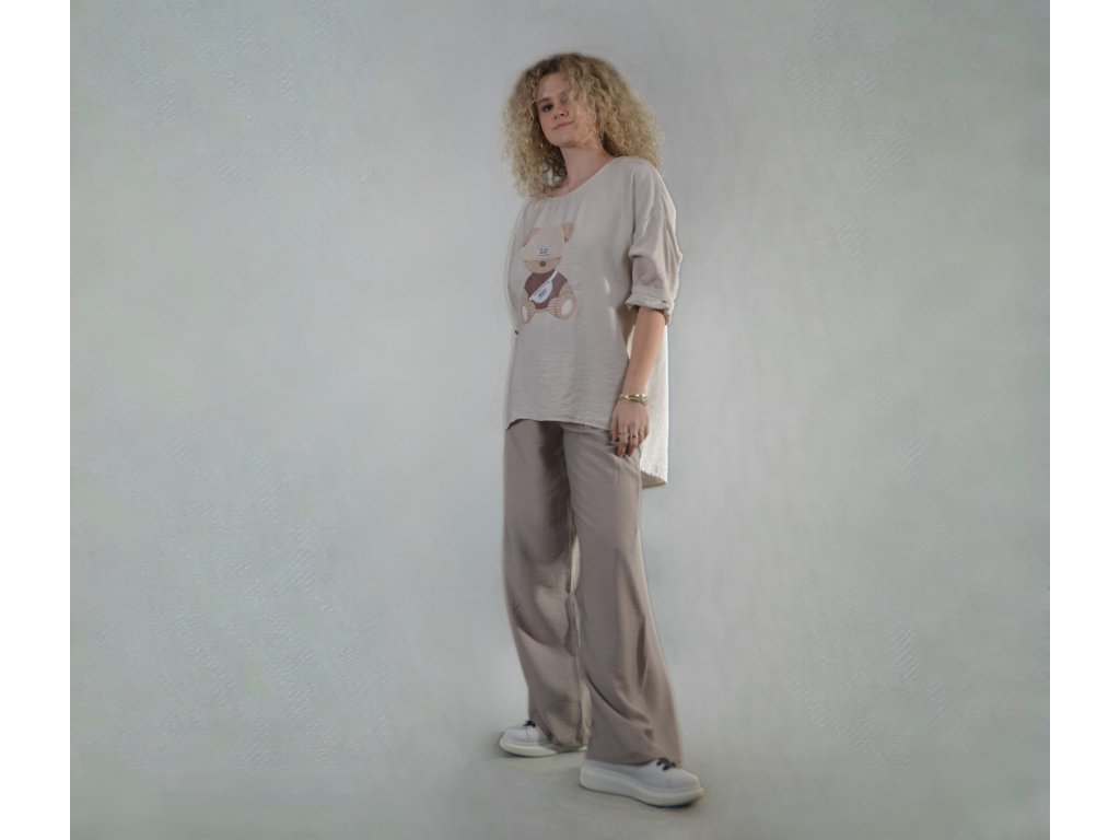Halenka Orsetta kombinuje pohodlí s ležérní elegancí. Díky volnějšímu střihu a příjemnému materiálu je ideální volbou pro každý den. Hravý motiv medvídka dodává outfitu špetku originality, zatímco neutrální barvy umožňují snadné kombinování s dalšími kousky šatníku.