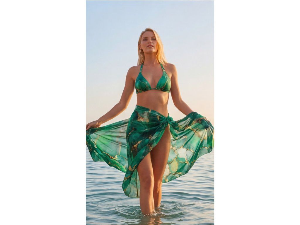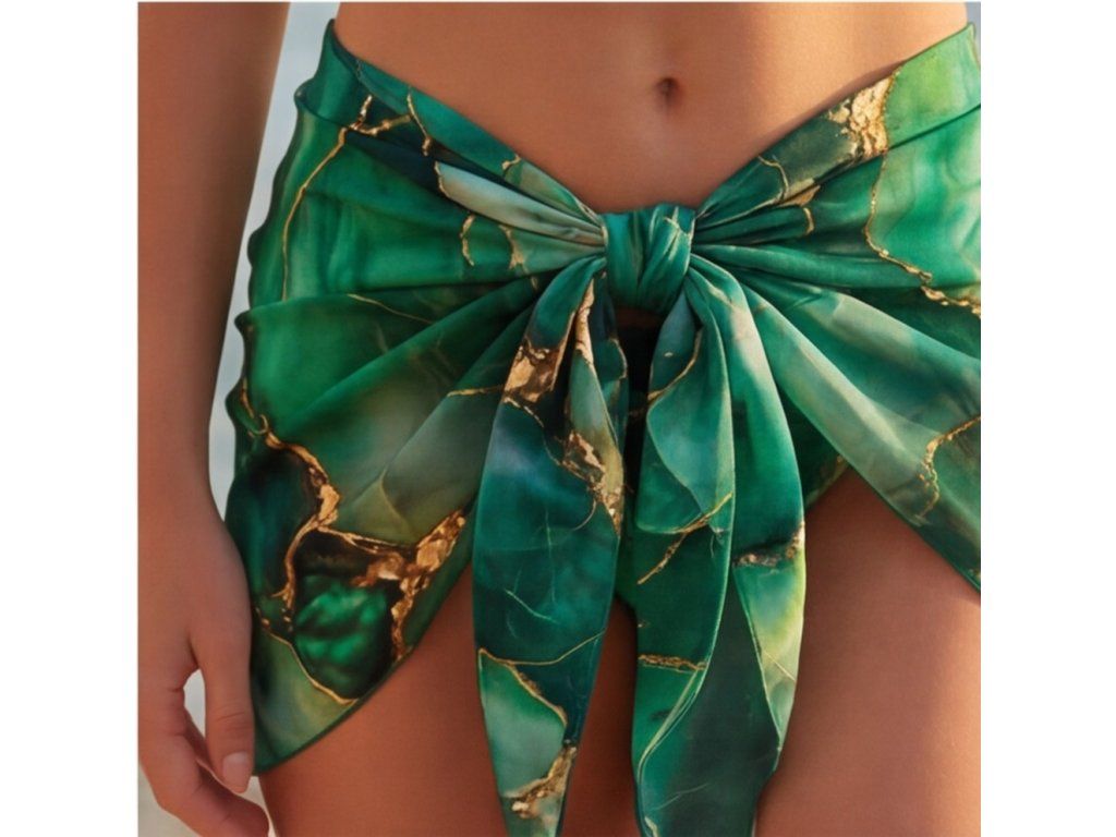 - Univerzální styling – lze nosit uvázané kolem boků, volně přehozené nebo jako součást plážového looku