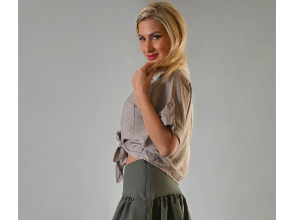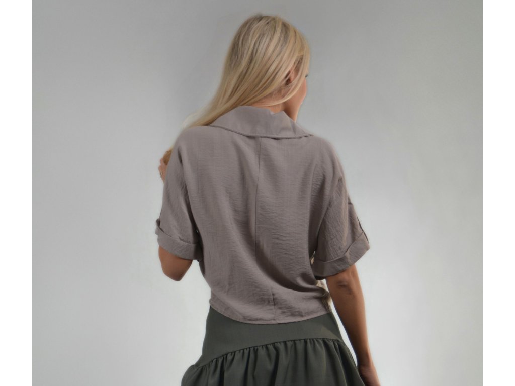 Lehká béžová košile s krátkým rukávem a zavazováním v pase je ideální volbou pro ženy, které milují stylovou ležérnost. Díky vzdušnému materiálu se skvěle nosí po celý den, zatímco volnější střih a jemná struktura látky dodávají outfitu moderní vzhled. Krátké rukávy s ohrnutím a zapínání na knoflíčky podtrhují její casual eleganci. Perfektně se hodí ke kalhotám, džínům i sukním – pro uvolněný i sofistikovaný look. Nadčasový kousek, který nesmí chybět ve vašem šatníku!