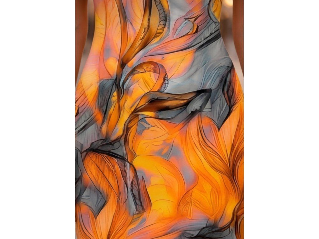 Siena Sera jsou dámské letní šaty, které v sobě spojují ženský přiléhavý střih, výraznou barevnost a elegantní večerní atmosféru. Na první pohled upoutají dynamickým abstraktním motivem v odstínech oranžové, zlaté, medové a jemně šedé, které dohromady vytvářejí velmi hřejivý, luxusní a sofistikovaný dojem. Tento model působí výrazně, ale zároveň stylově a vkusně, takže je ideální pro ženy, které chtějí během léta vypadat sebevědomě, elegantně a nepřehlédnutelně.
